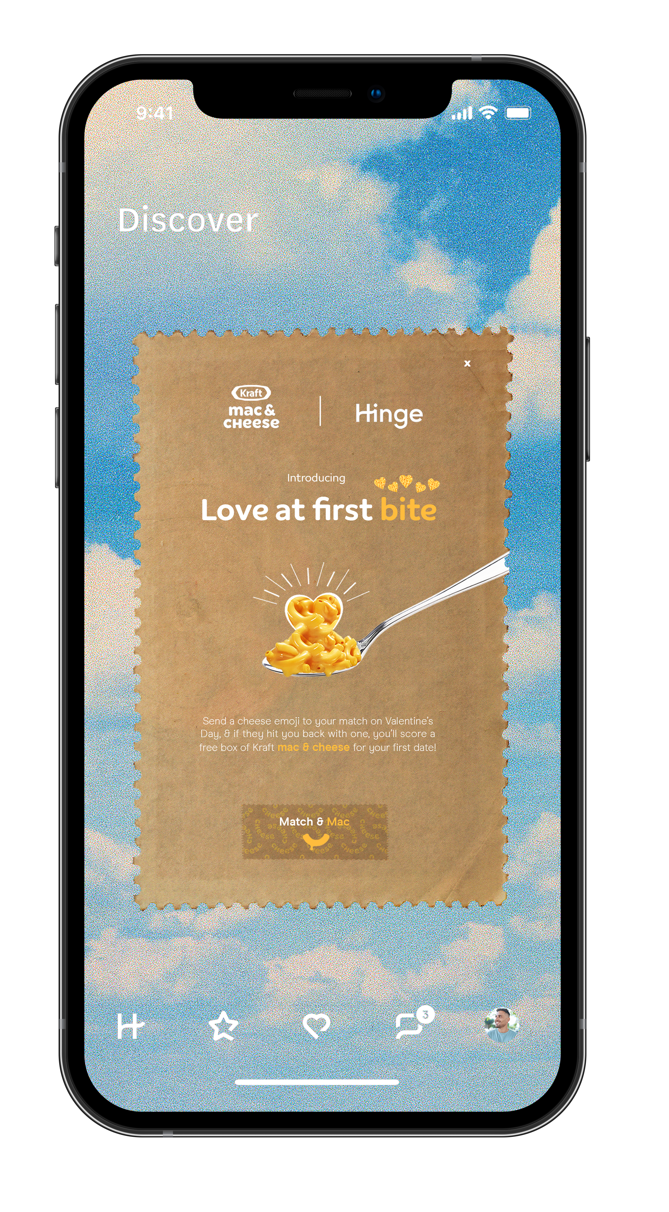 In-App Activation: Exchange a cheese emoji to between matches on Hinge to score a Kraft date night kit — delivered to your door.